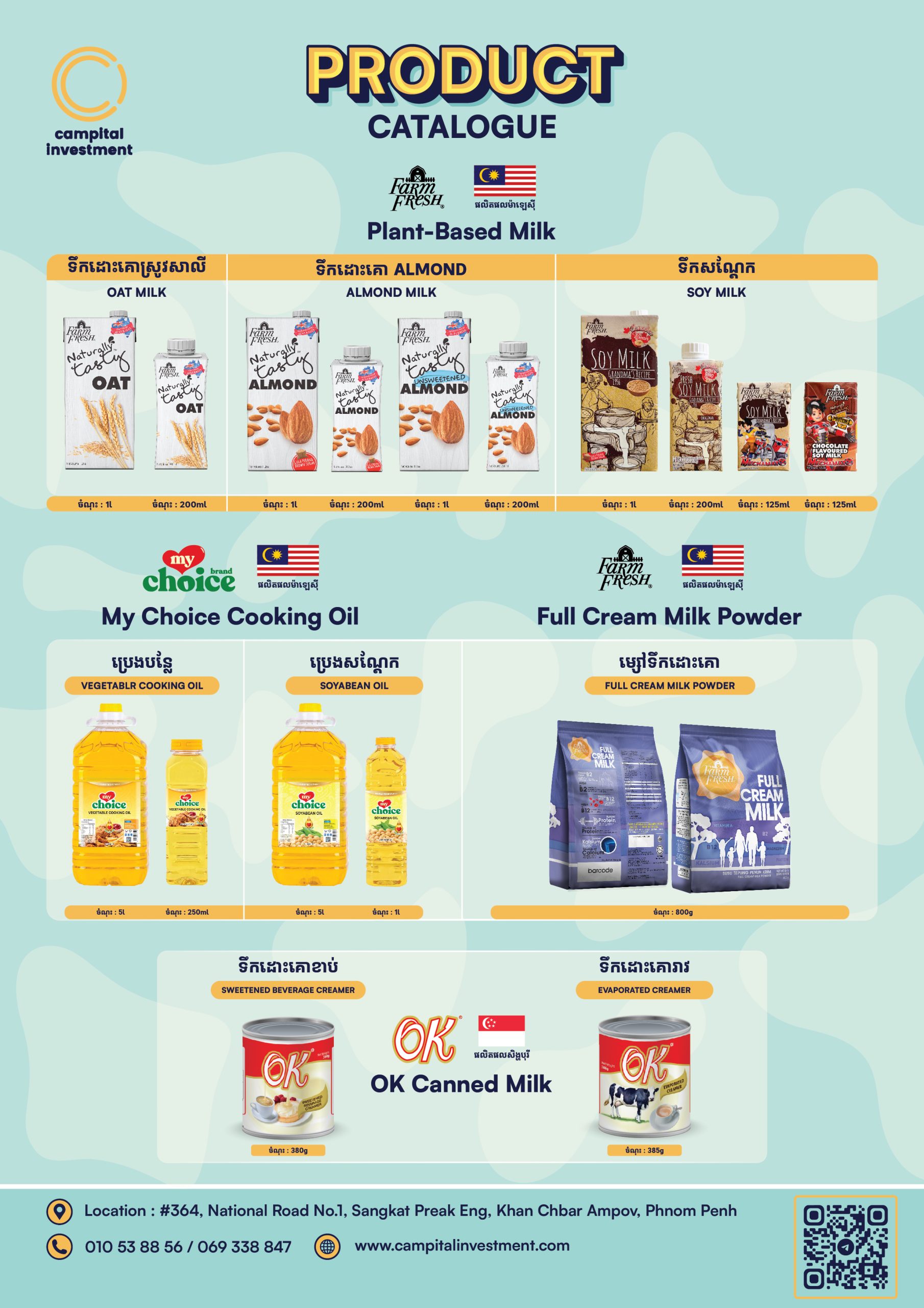 At Campital Investment Co., Ltd., our vision is clear: to connect Cambodia with the finest products from across the globe. Since our establishment in late 2022, we have proudly built a strong network as both an importer and distributor, ensuring that our partners, clients, and consumers receive only the highest quality goods with trusted service.